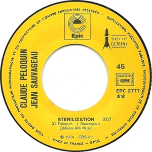 Péloquin, Claude - Monsieur l'Indien b/w Sterilization (picture sleeve)