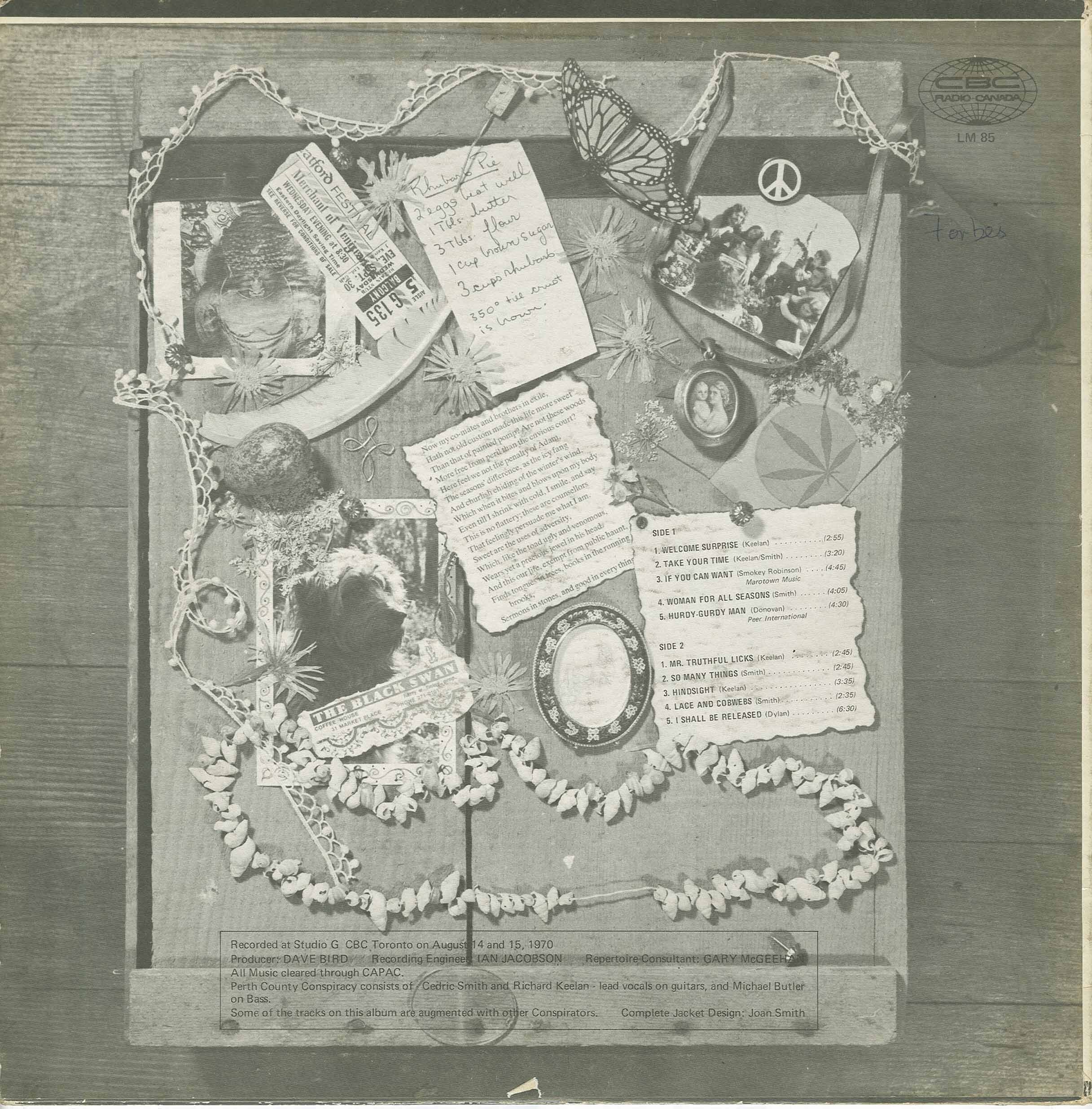Recorded at Studio G CBC Toronto on August 14th and 15th, 1970