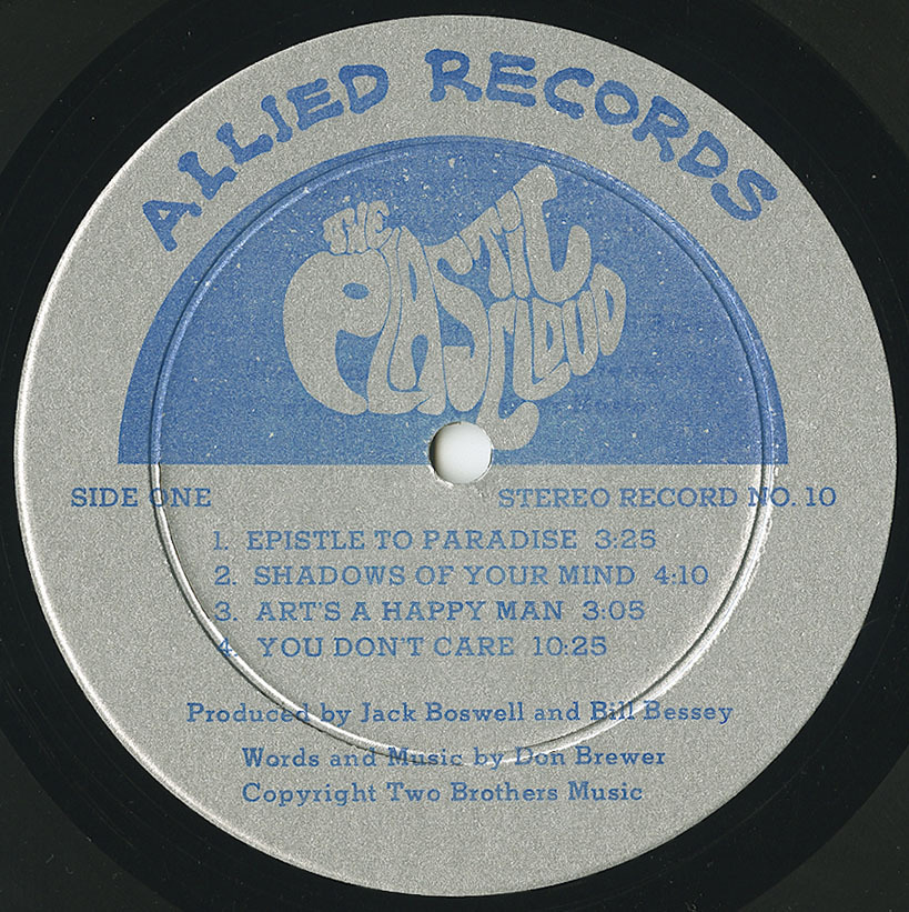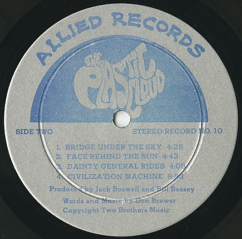 The Plastic Cloud album was accompanied by the 45: “Shadows Of Your Mind b/w Dainty General Rides” on Allied 6357.