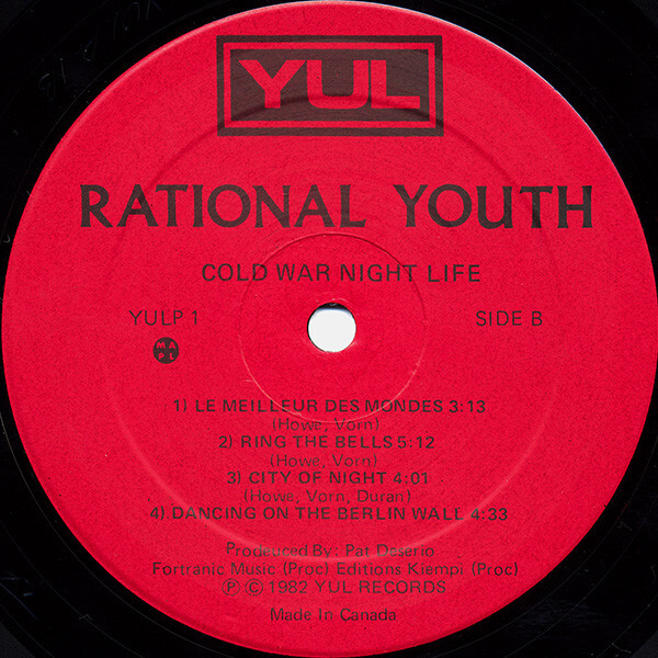 After Bill's departure, Tracy and Kevin carried on with the addition of Denis Duran and Angel Calvo, and toured extensively across Canada. In the spring of 1983, the group signed with Capitol Records and released the mini-album 'Rational Youth'. This record met with some success in Canada, but the chemistry which had existed between Tracy and Bill in Rational Youth's original conception was missing in the new configuration and this line-up disbanded at the end of 1983.