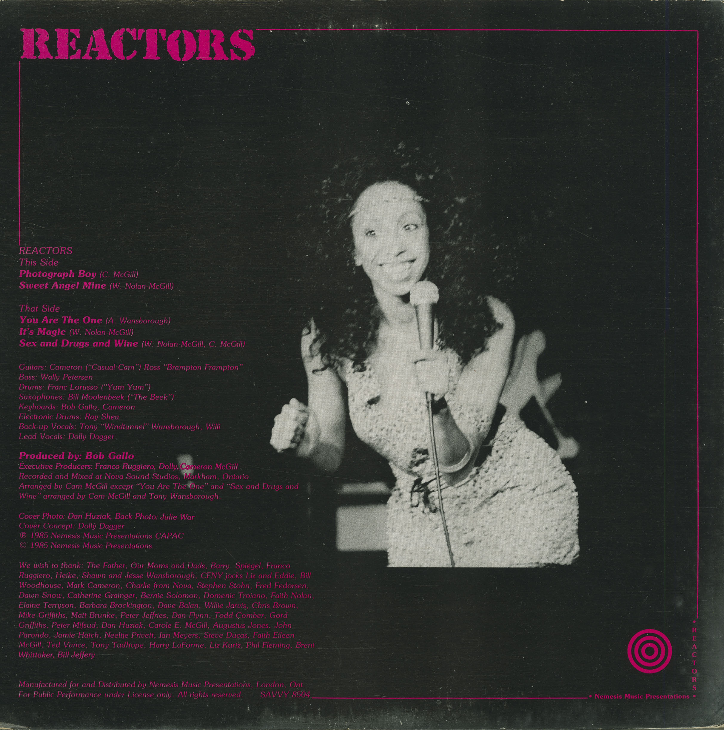 The Reactors wish to thank The Father; their moms and dads; Barry Spiegel; Franco Ruggiero; Heike; Shawn and Jesse Wansborough; CFNY jocks Liz and Eddie; Bill Woodhouse; Mark Cameron; Charlie from Nova; Stephen Stohn; Fred Fedorsen; Dawn Snow; Catherine Grainger; Bernie Solomon; Domenic Troiano; Faith Nolan; Elaine Terryson; Barbara Brockington; Dave Balan; Willie Jarvis; Chris Brown; Mike Griffiths; Matt Brunke; Peter Jeffries; Dan Flynn; Todd Comber; Gord Griffiths; Peter Mifsud; Dan Huziak; Carole E. McGill; Augustus Jones; John Parondo; Jamie Hatch; Neeltje Priett; Jan Meyers; Steve Ducas; Faith Eileen McGill; Ted Vance; Tony Tudhope; Harry LaForme; Liz Kurtz; Phil Fleming; Brent Whittaker; and Bill Jeffery.