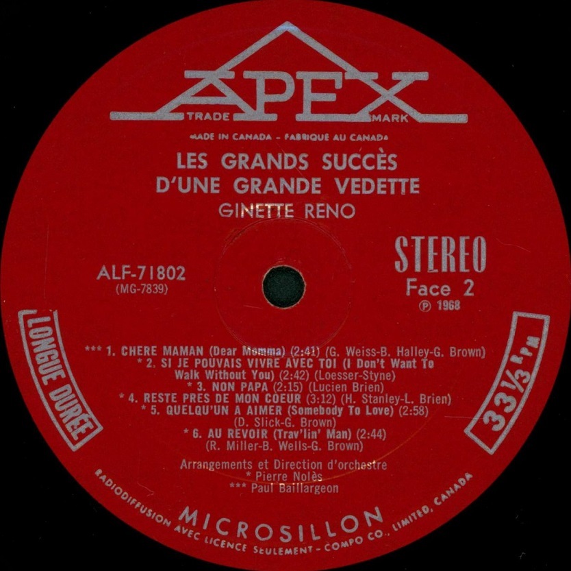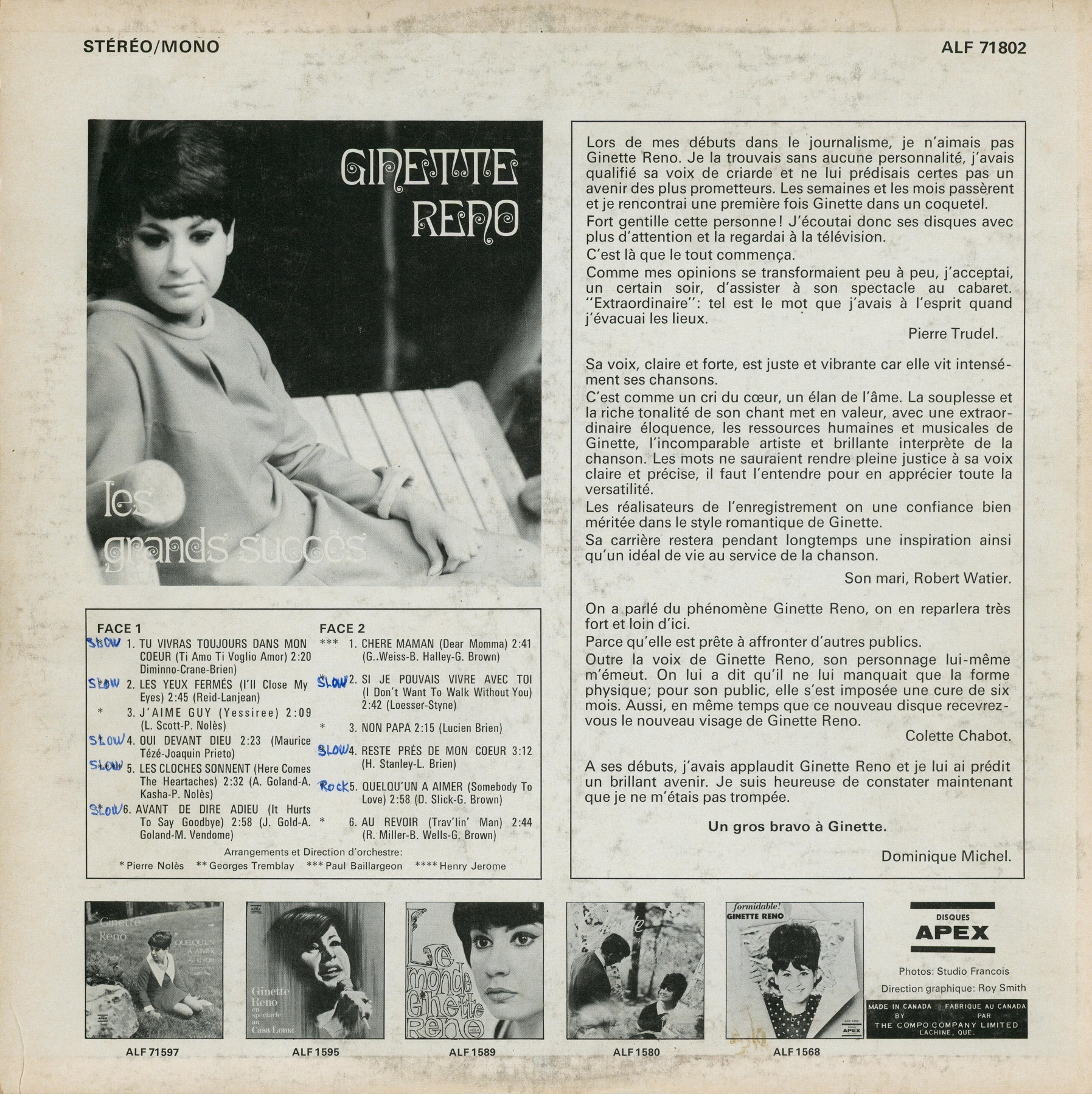 Reno, Ginette - Les Grands Succès D'Une Grande Vedette
