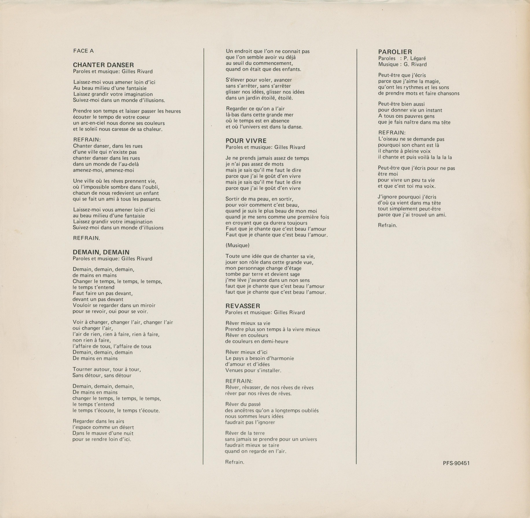Quelle belle vie Record sleeve (back)