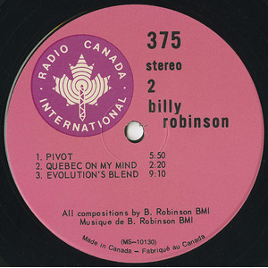 Both of these funky instrumental tracks, originally released on Evolution's Blend, can be found on the highly recommended Ready Or Not compilations put out by Do Right Music. Both were recorded on Sept. 8th and 9th, 1972, by the same line-up; Robinson on tenor sax, Pierre Leduc on piano, Errol Walters (previously of the Soul Vendors) on bass, Peter Leitch on guitar and Jim Norman on drums. Robinson had this to say about "Québec", which was recorded as an afterthought: "When we found out there was a little tape left at the end of our session, I asked Jim to come up with a beat and I just played off that. I think we recorded it in one take and it sounded alright so we kept it. Now that's the track everyone wants to know about."