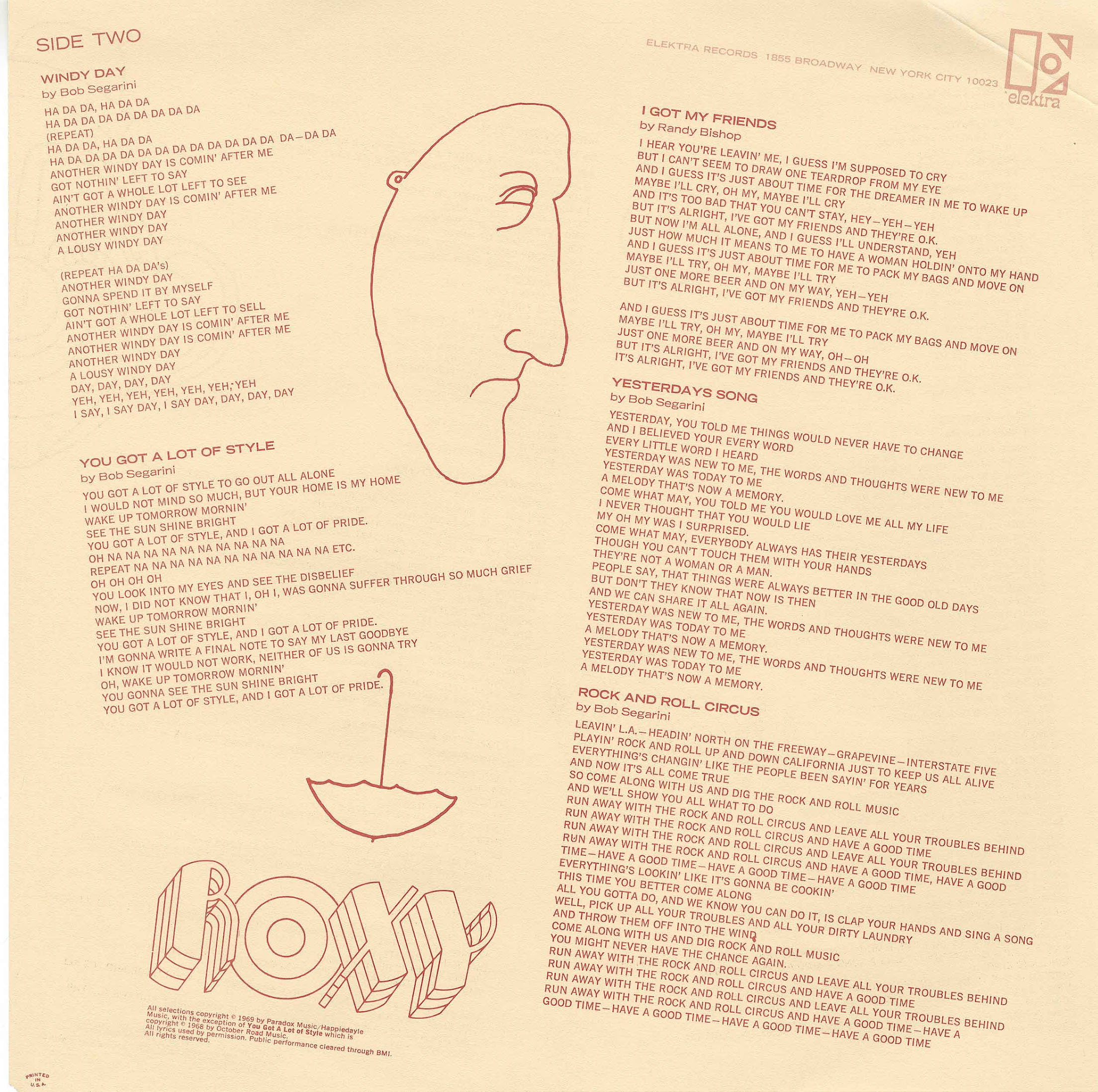 Roxy might be best known as the group from which a more widely known Elektra band emerged, as principal singer-songwriter Bob Segarini and Randy Bishop went on to found the Wackers, who issued three LPs for the label in the early 1970s. While the Wackers' albums (also reissued on CD by Collectors' Choice Music) often went in a Beatlesque pop direction, the earlier Roxy put a greater accent on rootsy if diverse rock of both the R&B- and country-influenced variety. Seeds of the Wackers, however, could be heard in Roxy's general back-to-basics approach at a time when much rock music was getting heavier, though Roxy never did get wide recognition before breaking up.