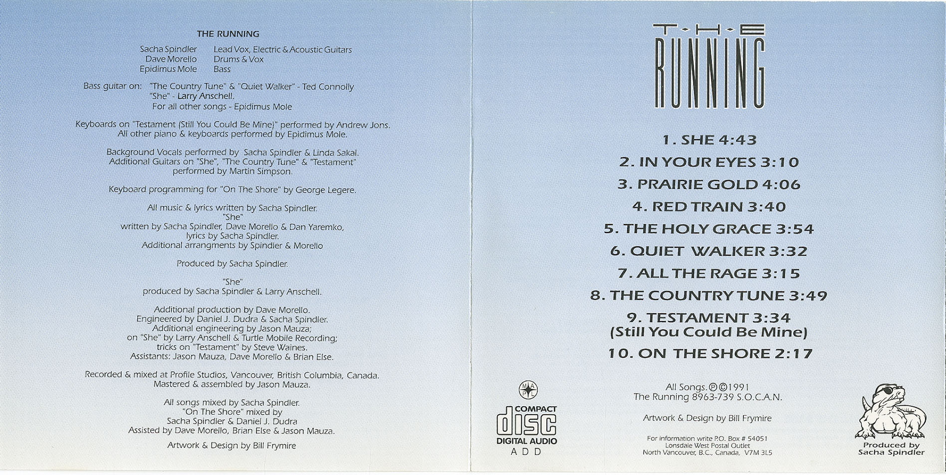 As one of the earliest independent CD's to emerge from Canada’s West Coast, The Running captures the spirit of Vancouver’s thriving indie scene of the early 1990s and remains a rare gem in Canadian music history.