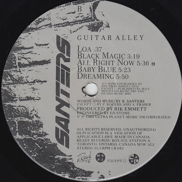 The choice of the album name “Guitar Alley” came indirectly from a conversation Rick Santers had with the band’s live sound engineer at the time. Rick recalls, “We were playing in an odd-shaped venue and the sound console was situated on one side of the room instead of in the middle. After our soundcheck, I asked our sound engineer how everything was sounding. He said “Well, it’s hard to tell. All I’m hearing is the guitar. That’s all I’m hearing because I’m standing in guitar alley”. That name stuck in my head, and even though I never wrote a song with that title it seemed all too appropriate for the album’s title considering all the new guitar textures that were becoming the basis of the new album”.