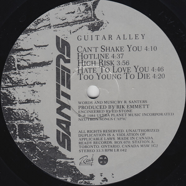 The release of SANTERS “Guitar Alley” was groundbreaking for the band in many ways. Along with the album being recognized and released in Europe and Canada, it was also released for the first time in the United States and Japan expanding on SANTERS international popularity. Offers to tour into the midwestern and southern United States increased the band’s already extensive touring schedule and the video for the song “Can’t Shake You” found a home in regular rotation on MTV. Also, SANTERS version of FREE’s classic “All Right Now” became a serious contender in many top 40 charts.