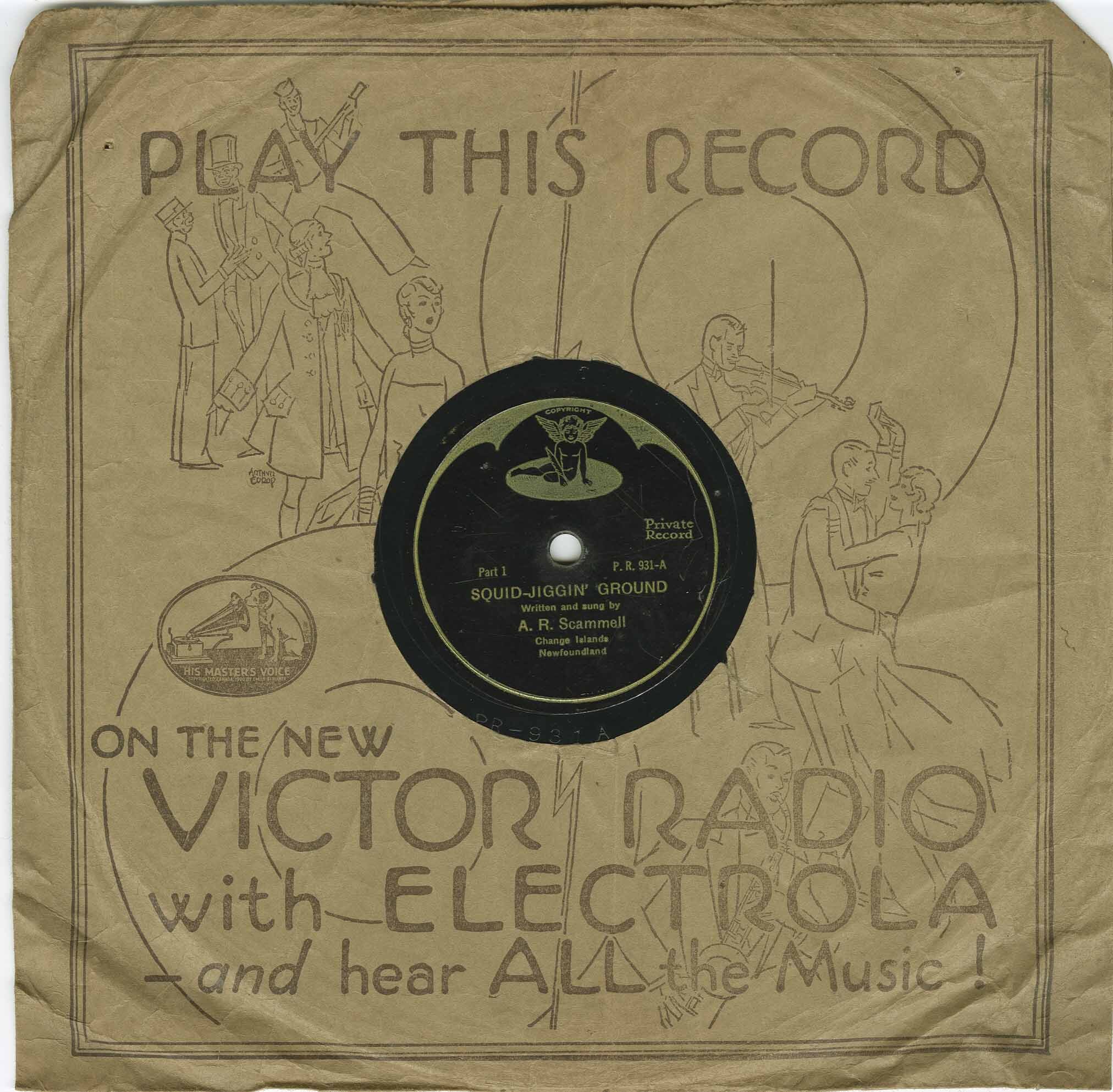 In 1928, when he was only 15 years old, Art Scammel composed Squid Jiggin' Ground as a high school project. Fifteen years later, in 1943, Art Scammell produced Newfoundland's second recording specifically intended for Newfoundland consumption. This was his first song and was a very successful commercial undertaking; and it was recorded as a private record "Squid-Jiggin' Ground Part 1 // Squid-Jiggin' Ground Squid-Jiggin' Ground Part 2" on the RCA label, Private Record P.R. 931 in Montreal. Somewhere between 15,000 and 20,000 albums were sold.