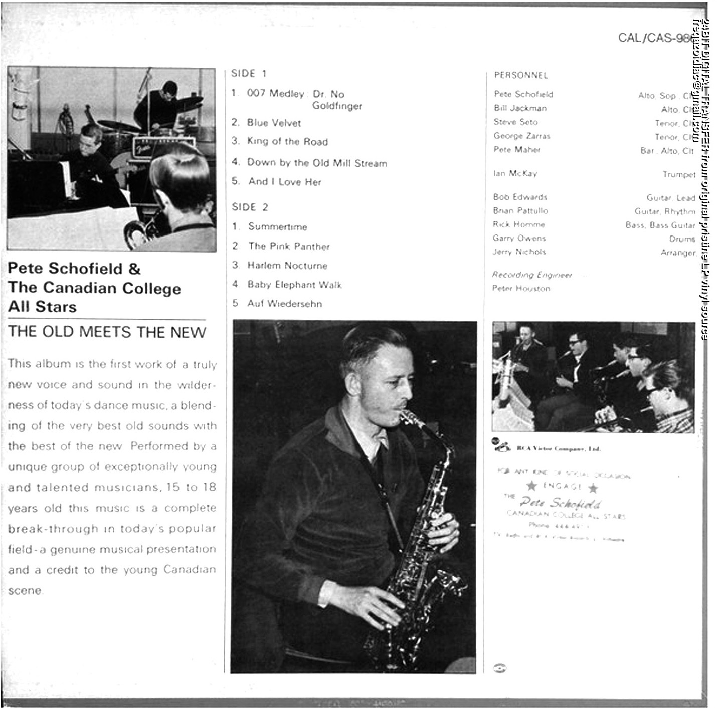 Pete Schofield was a Don Mills–based bandleader, saxophonist, clarinetist, arranger, and educator who carved out a unique place in Canada’s music landscape by championing the sound of young musicians. Beginning in the 1960s, he built one of Toronto’s most ambitious youth big-band programs, assembling ensembles of exceptionally talented teen players and guiding them through professional-level repertoire, arrangements, and recording sessions long before high-school jazz bands became common. His groups — often billed as Pete Schofield & The Canadians — blended the discipline and sophistication of the swing era with the modern pop, soul, and soundtrack influences shaping contemporary radio, creating a “now sound” that echoed Benny Goodman and Count Basie as confidently as Burt Bacharach, Jimmy Webb, and film theme composers of the day.