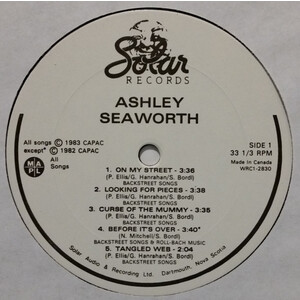 Ashley Seaworth is a band consisting of five members: Meredyth McSweeney (vocals), Bryan Cable (keyboards), Bruce Jacobs (bass), Don Chapman (drums), and Stephen Bordl (keyboards). Except for Meredyth and Stephen, all of the others are session musicians, and all are working locally. The band records at Solar Audio and Recording in Dartmouth, N. S.. As of this date, the band has not done any live performances, but this may change if the opportunity presents itself.