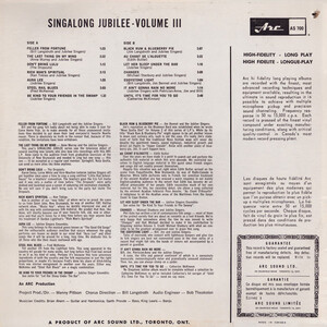 The popularity of the series naturally extended into recordings. Beginning in 1964, CBC partnered with Arc Sound to issue a run of Singalong Jubilee LPs, including Singalong Jubilee, Singalong Jubilee Volume II, Volume III, and The Singalong Jubilee Christmas Album. These releases captured many of the show’s most requested performances and preserved early recordings by artists who would soon achieve major success. In the early 1970s, material from the program was reissued on RCA Camden, and later anthologized on CD, ensuring the music remained accessible long after the television series ended.