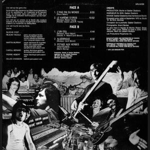 From the first spacey ringings of the 9-min “Pas Fin Du Monde” to the last drop of “Potage Aux Herbes Douteuses”, every single second is pure heaven with opening track setting an incredible standard with its great scat-vocals (reminding a bit Wishbone Ash during the Argus album) and its middle section almost stopping as if the End Of The World had reached us without a proper warning, but it is a false alert and the tracks picks up in a funkier manner. Closing up the first side is the 11-min “Kareme D’Eros” and its lengthy piano intro, where the group shows us that they can be quite impressive in singing (not just scatting) with its text and harmonies. If you can imagine a cross-over of jazz-rock with Yes, you might just be able to have an idea of how the track is closing.