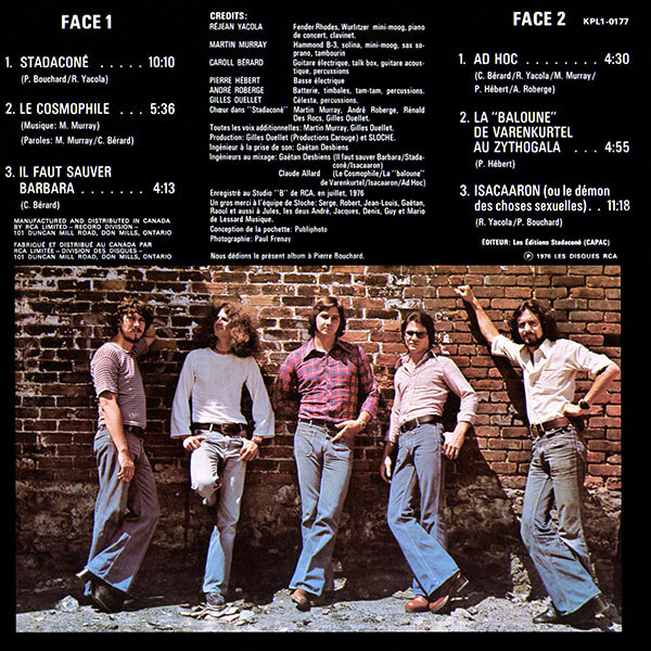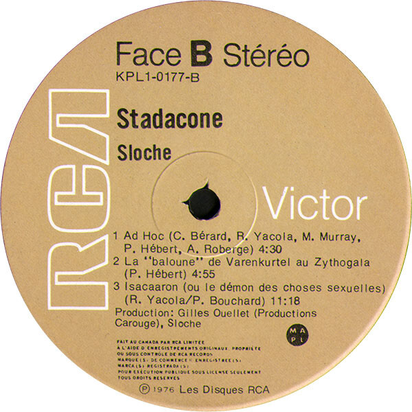With a slightly changed line-up (drummer being replaced and an extre percussionist also), Sloche was still headed by the double keyboard attack and having plenty of back-up by their guitarist and the rest of the band. “Stadacone” is relatively close to their debut although more towards Mahavishnu and Gentle Giant, than the debut.