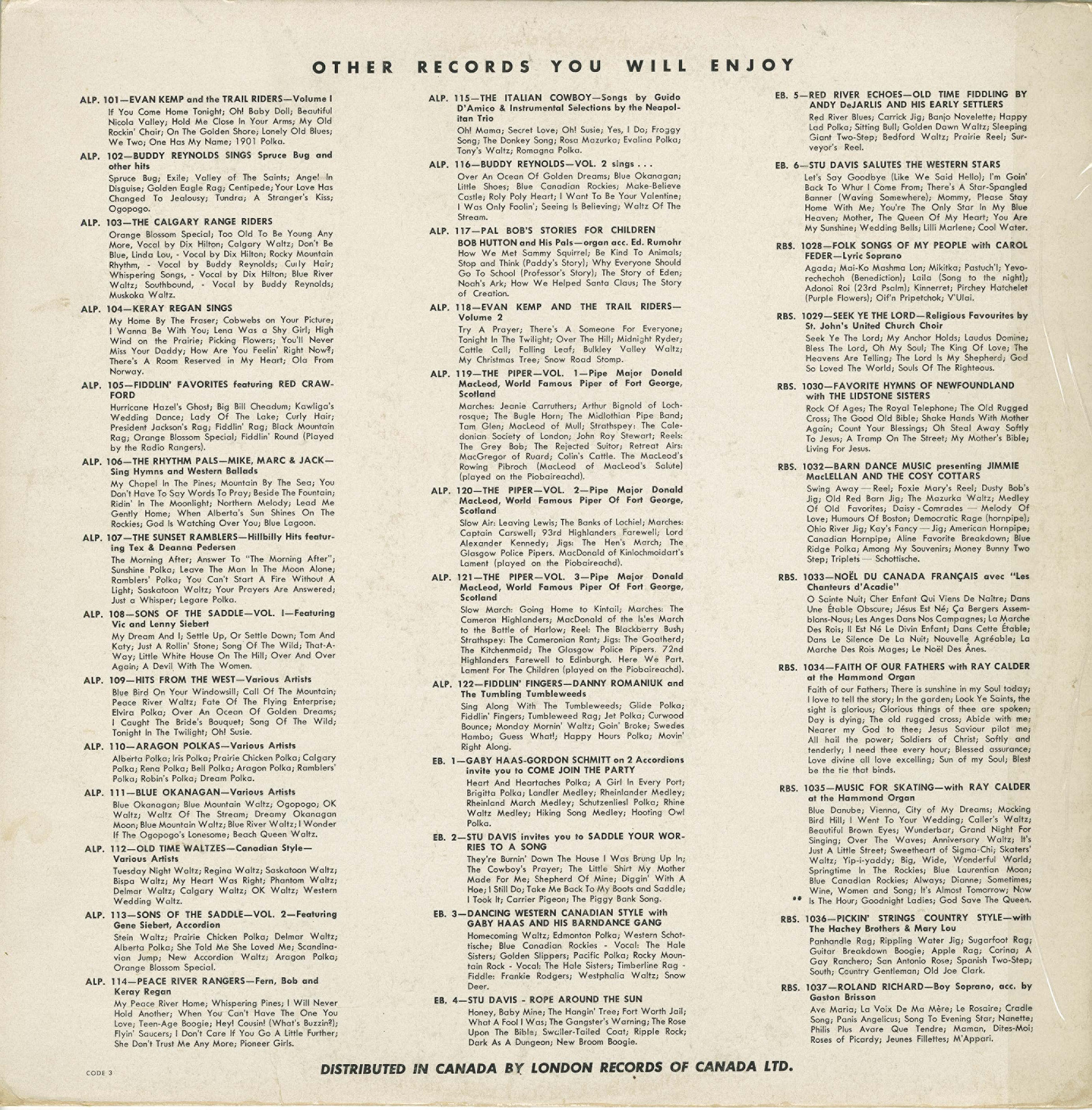 Personnel shifted over time, but the Canatal LP identifies the lineup as including Lenny, Vic, and Gene Siebert, along with Johnny Allan, Lucky Ambeault, and vocalist Diana Leah. Steel guitarist Johnny Allan is independently documented as having performed with Sons of the Saddle, situating the group firmly within the western swing and country working-band tradition that flourished in Canada during the 1950s.