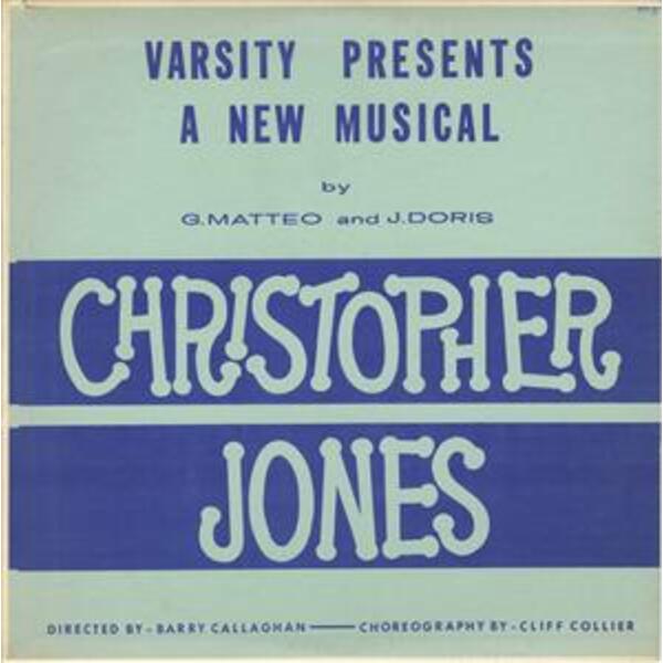 "The 1960 All-Varsity Musical tells the story of a young man making his way in the world of big business. The hero arrives in town full of ambition and joins the Lovely Lady Manufacturing Company with the exalted rank of Elevator Boy.The rest of the show describes his swift rise to control of the company, and his equally swift descent when he runs afoul of the company's unscrupulous managing director, Percy Blifil, who has a few ambitions of his own. But Christopher salvages something from the wreck of his career - the bosses daughter,Stephanie Collins, who has been transformed by his love from a walking business machine into a woman who starts life afresh with him,as Mrs. Jones. In the course of the show, the audience is treated to a free-wheeling tour of various aspects of the "Organization", including the secretaries who have trouble keeping their bosses at bay, and the Sales Executives who are so well drilled that they move in unison to a tune called "The Organization Waltz". This record attempts to capture the gaiety, vitality, and satiric bite which has made "CHIRSTOPHER JONES" one of the liveliest college musicals in years."