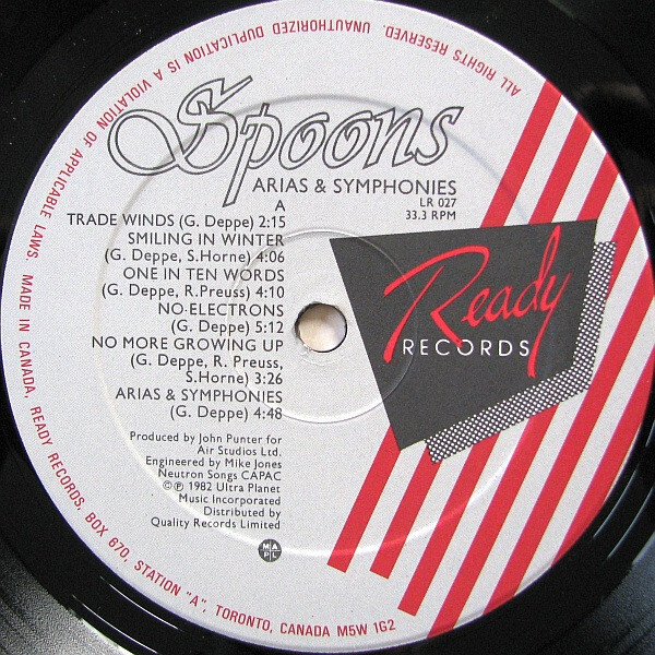 Arias & Symphonies was the second album by Burlington’s Spoons and includes the highly successful singles “Nova Heart” and “Arias & Symphonies.” It remains one of the most celebrated Canadian new wave albums and was later reissued in a deluxe 30th Anniversary Edition by Sparks/Ready/Universal.