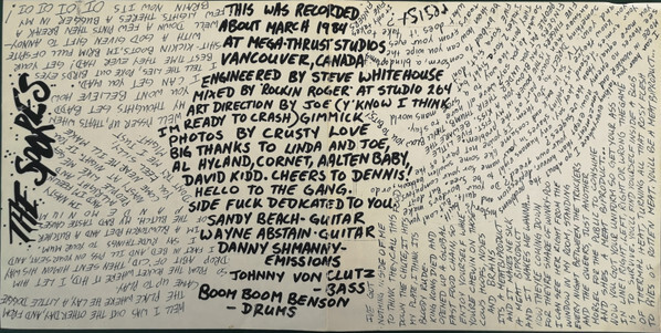 The Spores formed in Vancouver in 1983 and became part of the city’s second wave of punk. The group centered on guitarist Wayne Abstain, guitarist Sandy Beach, drummer Boom Boom Benson, bassist Johnny von Klutz, and vocalist Danny Shimanny. From the start they combined straightforward punk songwriting with a sense of humour and stage presentation that made them stand out from other local bands, but their music was always the core of the project.