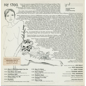 In 1981, Steel recorded her sole known album, Reincarnation, at McClear Place Studios for Innovation Records. Produced by Phil Sheridan, the album’s concept was to introduce Billie Holiday’s muse to Steel’s repertoire, preserving the emotional depth of Lady Day’s work while updating the sound for a modern setting. The record featured a first-class Canadian jazz lineup: Joe Sealy (piano, musical director), Pete Magadini (drums), Dave Young (bass), and Eugene Amaro (saxophone). Steel’s program mixed classics like “God Bless the Child,” “Willow Weep for Me,” and “Don’t Explain” with lesser-known standards and her own composition, “Boudoirs.”