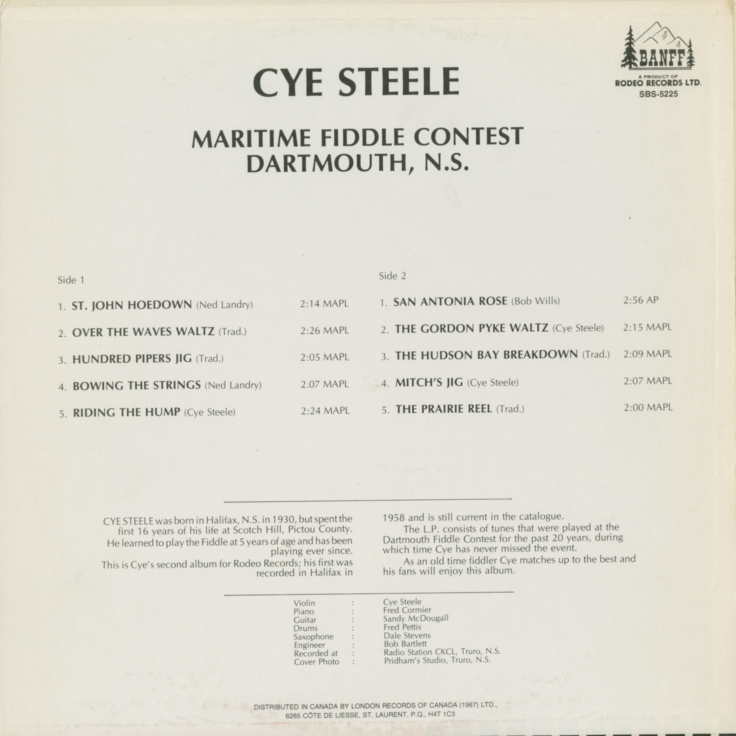 Cye Steele - Maritime Fiddle Contest Dartmouth, NS BACK