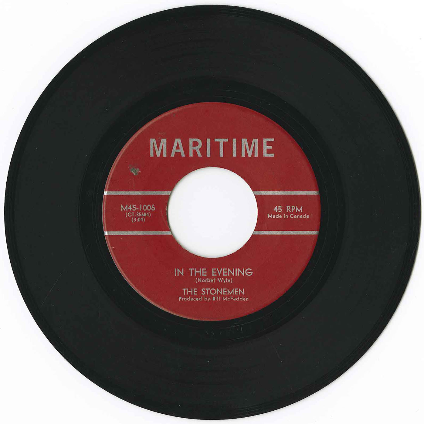 Little is known of the Stonemen. What is know is that they were from Moncton, New Brunswick and that this, their lone single, "In the Evening b/w Faded Colors" is amongst the most desirable Canadian garage fuzz freak music artifacts on the planet. This single recently changed hands for a cool $4,000.00, making it the second most valuable Canadian single of all-time, just behind The Fringe's "Canada's Next Number One Recording Group" promo.