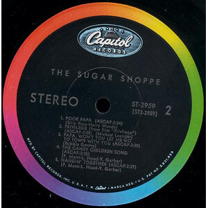 Essential sunshine pop classic. The sugar Shoppe began in Toronto as a studio project. Lead Shoppe-keeper Peter Mann teamed up with vocalist Laurie Hood and Lee Harris and London, Ontario vocalist—and future Titanic star Victor Garber. After having some success in Canada, the quartet set their sights on America and signed to Capitol Records the following year. Produced by Wrecking Crew session musician/Glen Campbell producer Al De Lory The Sugar Shoppe features a bright and breezy L.A. soft pop sound, with a hint of psychedelia akin to The Mamas & The Papas and The 5th Dimension. Arranged by lounge legend/electronic music pioneer Mort Garson, the writer of Ruby & the Romantics' "Our Day Will Come."