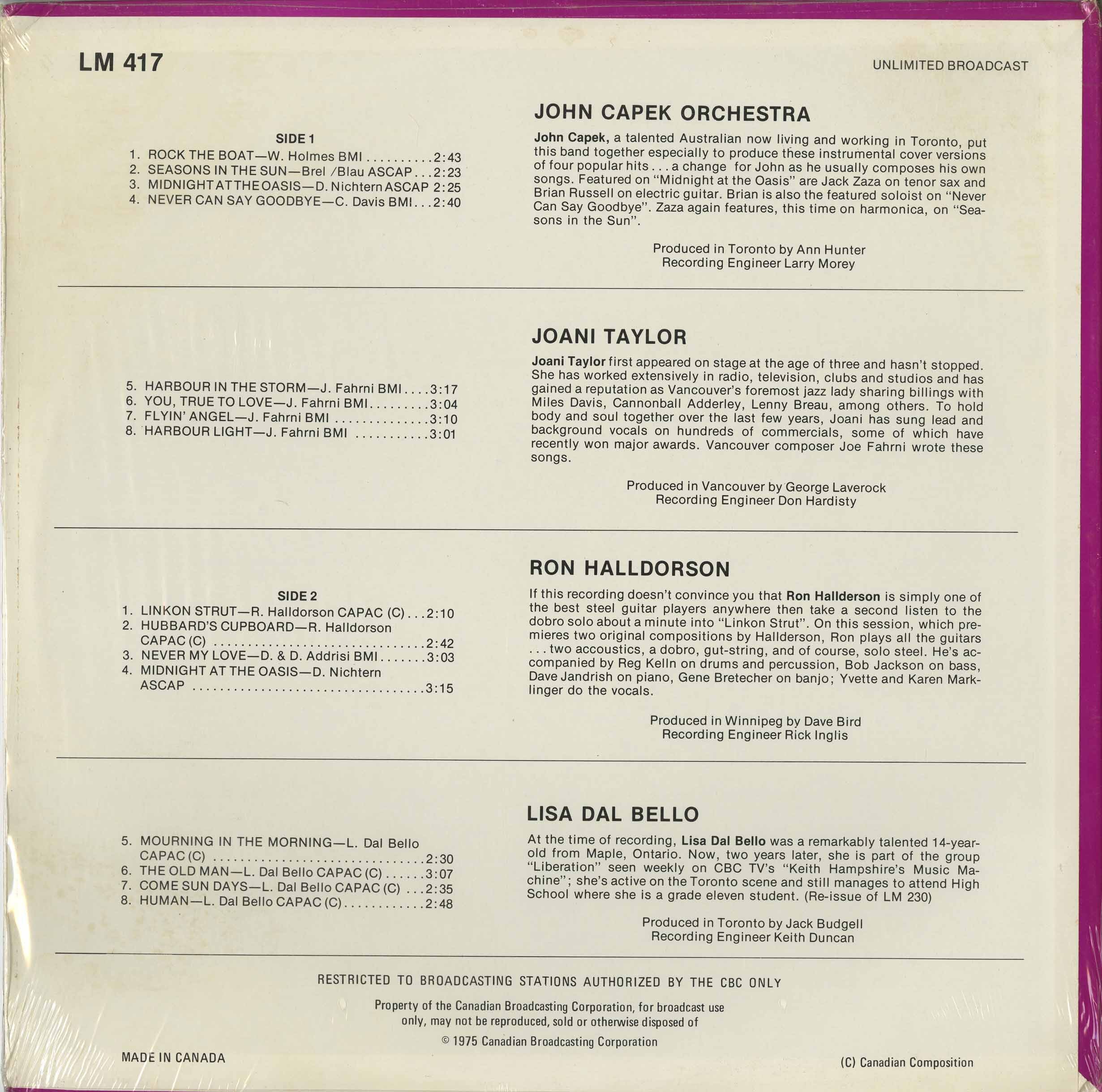 Jazz, CBC Radio Canada LM Series, Canadian Women in Song, British Columbia, The Vancouver Jazz Scene, 1970's