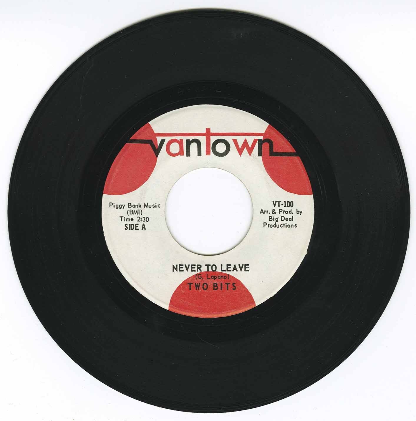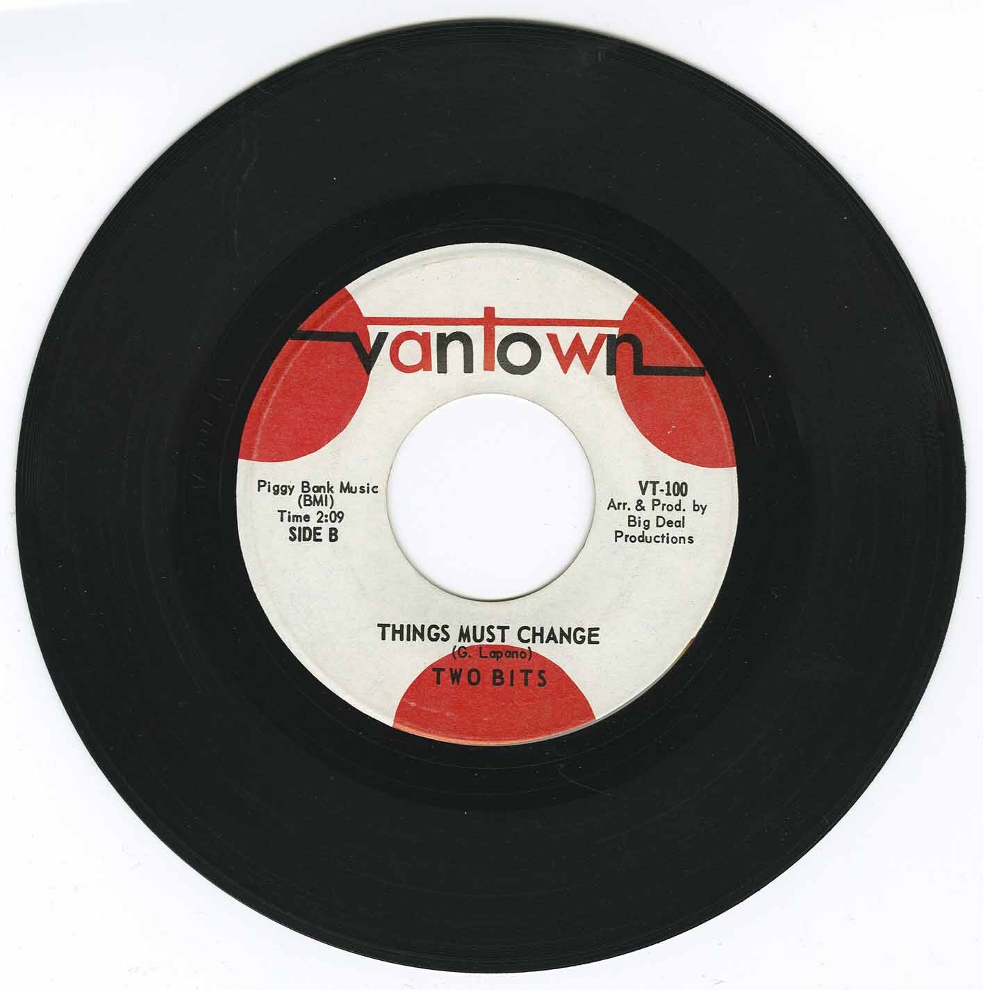 The Band "Two Bits" released one single - on the Vantown label, one of only two singles ever pressed on the label, the other one being One Way Street http://www.mocm.ca/Music/Title.aspx?TitleId=294469. Only a handful of the singles were produced, most being distributed in January, 1967 to local radio stations, like C-JAZ.