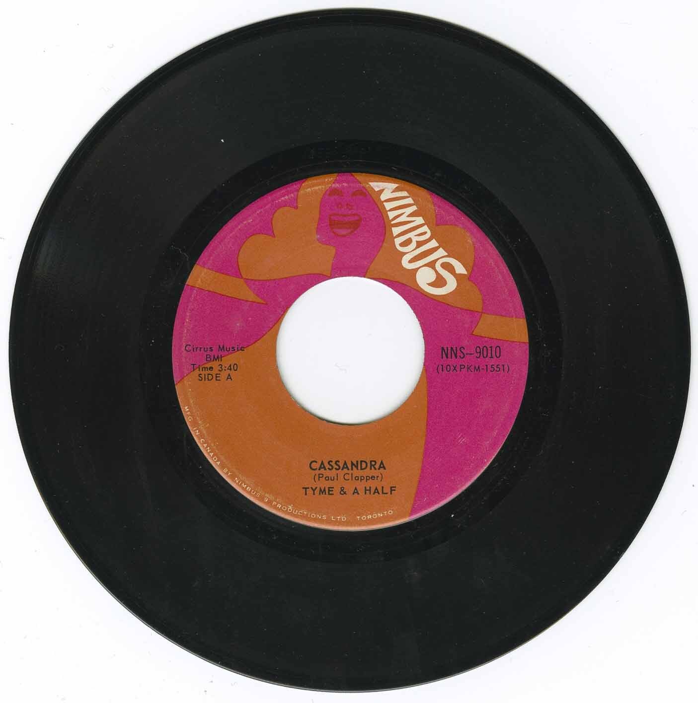After coming to the attention of Al MacMillan at the newly formed Nimbus 9 Productions, the group adopted the more contemporary name Tyme & A Half. Under this name, they released two singles between 1968 and 1969, including ‘It’s Been a Long Time’ backed with ‘Magic Island’, followed by ‘Cassandra’ b/w ‘It’s Happening Here’. The debut single received notable regional airplay, charting as high as #20 on CFRA-AM in Ottawa.