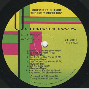 Released in early 1967 but containing the band's three 1966 singles, Somewhere Outside skirts the cusp of '66 r'n'b and '67 psychedelia. The LP opens with 'Nothin' and its prototypical garage riff, allegedly recorded on a two-track machine for $300 and pushed into regular rotation just a few weeks later by local deejays. Other tracks, such as the revved-up 'She Ain't No Use to Me' and the searing 'Just in Case You Wonder', their third single, capture on vinyl the hegemony of cool the Ducklings had over the Yorkville scene in Toronto at the time. Still other tracks, like the Rascalesque, harmonica-tinged 'Not for Long', add a quieter balance, while the closer 'Windy City (Noise at the North End)', an acid-blues rave-up, echoes Paul Butterfield's excursions of the same year.