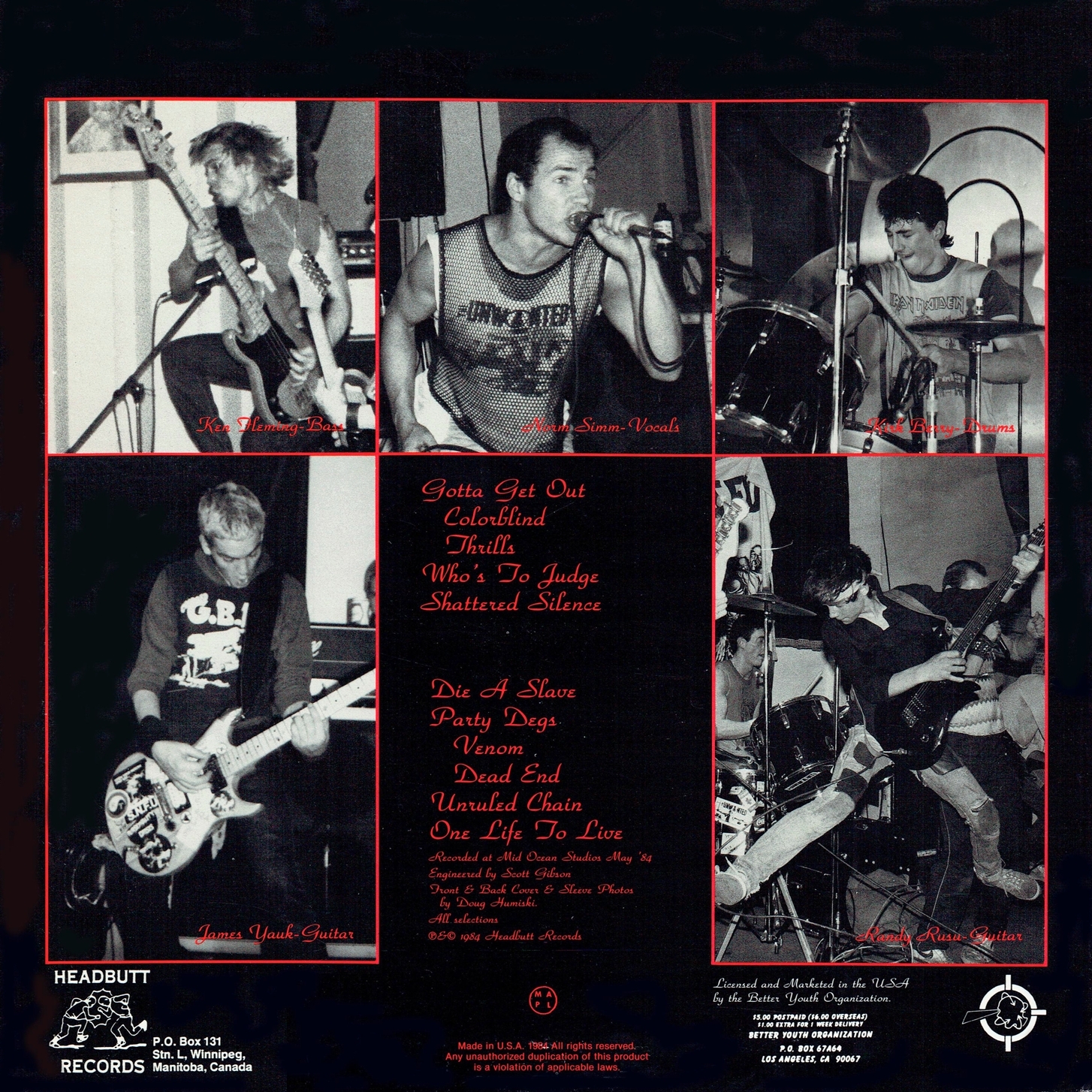 In 1984, Unwanted released their sole official LP, Shattered Silence, issued by Better Youth Organization / Head Butt Records. The album captured the band at full throttle, delivering eleven aggressive tracks that cemented their status as one of the most ferocious hardcore acts to emerge from the Winnipeg scene during that period. Despite touring and releasing vinyl, internal tensions led to the group’s dissolution in 1985, when bad blood ultimately split the band.