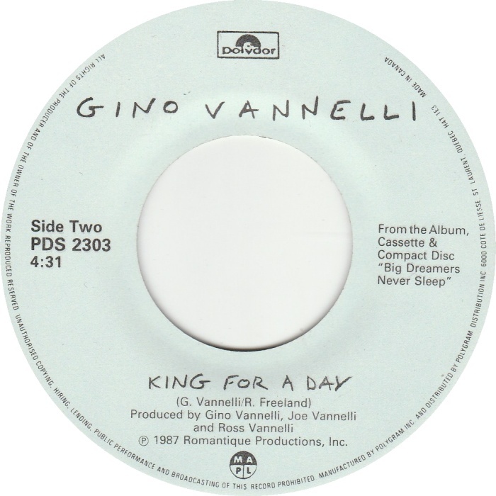 Vannelli, Gino - In the Name of Money b/w King for a Day (picture sleeve)