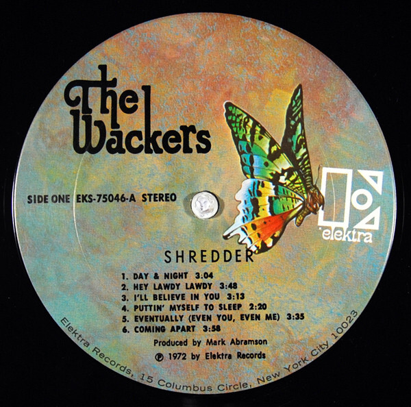 Although the Wackers had formed in Northern California, they moved to Montreal after recording most of their second album, 1972's Hot Wacks, in the city, returning to play an enthusiastically received two-month residency at the Mustache club. Shredder started out not as a Wackers album, but as a side project for Bob Segarini and Randy Bishop, who had done much of the writing and singing on the first two Wackers LPs. Calling themselves the Incredible Duck Brothers, they were joined in the recording by Wackers bassist-guitarist Bill "Kootch" Trochim. Segarini had studio time at Wally Heider's Studio in San Francisco, he explains, "and we went in and did some little acoustic things. There were three or four songs we did, sort of mellow stuff. Everybody was enjoying this." After getting a go-ahead from Elektra president and founder Jac Holzman to do a full album, he continues, "I said, 'I want to go back to Montreal and finish this.' At the end, Elektra was so knocked out by the songs they flew [Wackers drummer] Ernie [Earnshaw] up, and we finished the album as the Wackers. So, so much for the Duck Brothers. But that's why it really leans back to the acoustic days, 'cause that's how it started out."