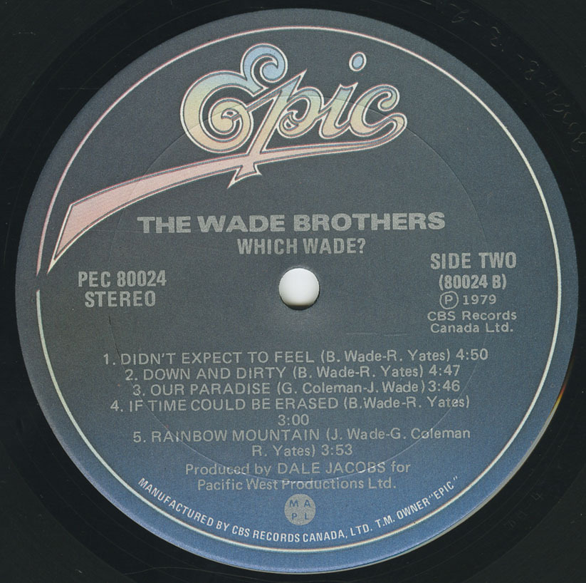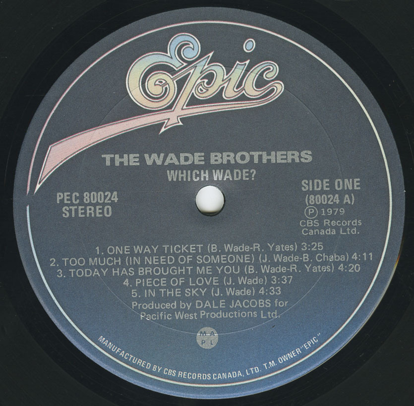Working with producer and jazz keyboardist Dale Jacobs, the brothers began recording their debut album at Total Sounds West Ltd. in Vancouver, before mixing sessions at Manta Sound in Toronto. The resulting LP, Which Wade? (Epic PEC 80024, 1979), was one of the most technically advanced Canadian studio productions of its day. It featured the Aphex Aural Exciter System—then a cutting-edge studio enhancement tool—and an impressive roster of supporting musicians: Doug Louie, Graeme Coleman, Glen Hendrickson, Jim Vallance, Geoff Eyre, Mary Saxton, Joani Taylor, Jane Mortifee, Nancy Nash, and Melinda Whiticker among others. The sessions were co-produced by the Wades with Jacobs, and engineered by Carlton Lee, Don Steele, and Brian Campbell.