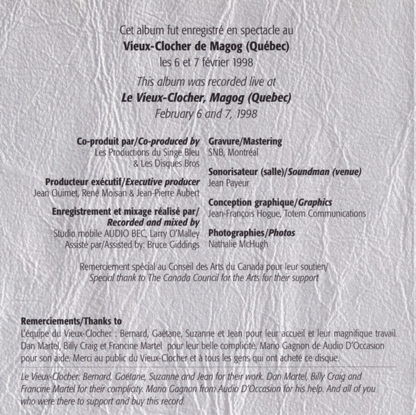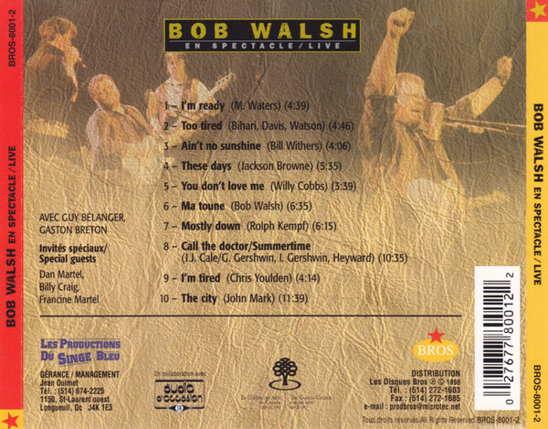 Walsh, Bob - En Spectacle / Live CD case back cover