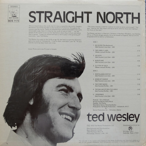 Wesley recorded his debut album, Straight North, in 1972 at Damon Studios in Edmonton, becoming the first Northwest Territories–based artist signed to a major Canadian label. The album introduced his blend of northern storytelling, frontier humour, and social observation, much of it written by Ruzicka and Wesley’s friend Doug Leonard. Songs referencing the Mackenzie River, Aklavik, and northern life gave southern listeners a rare entry point into the realities of the Arctic.