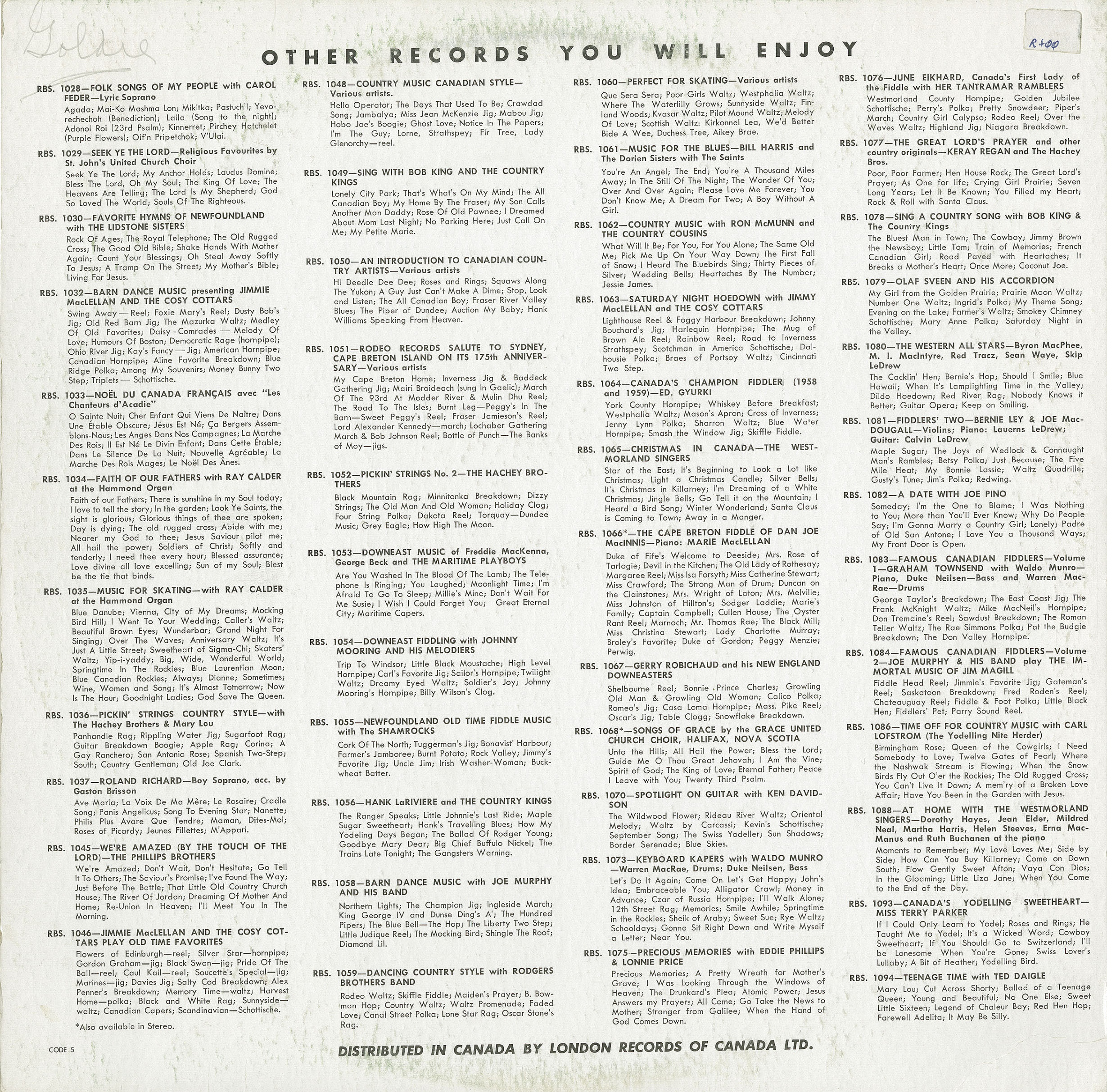 New Brunswick, Folk, 1960's, Canadian Women in Song, Banff Rodeo Records