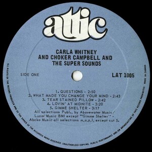 Carla Whitney remains one of Canada’s most intriguing and mysterious soul voices. Emerging from Toronto in the mid‑1970s, she is best known for her singular recording—Carla Whitney (with Choker Campbell and the Super Sounds)—released in 1975 on Attic Records. Although her recorded output was brief, the album (along with its two singles, catalog numbers AT 117 and AT 113) has grown into a coveted collectible among soul, funk, and R&B enthusiasts.