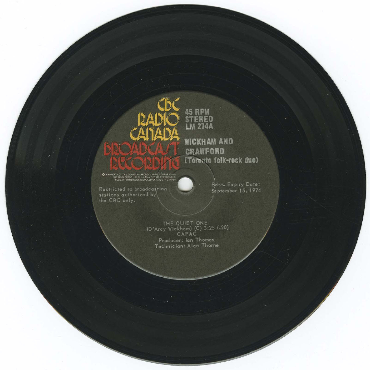Label: CBC Radio Canada LM 274