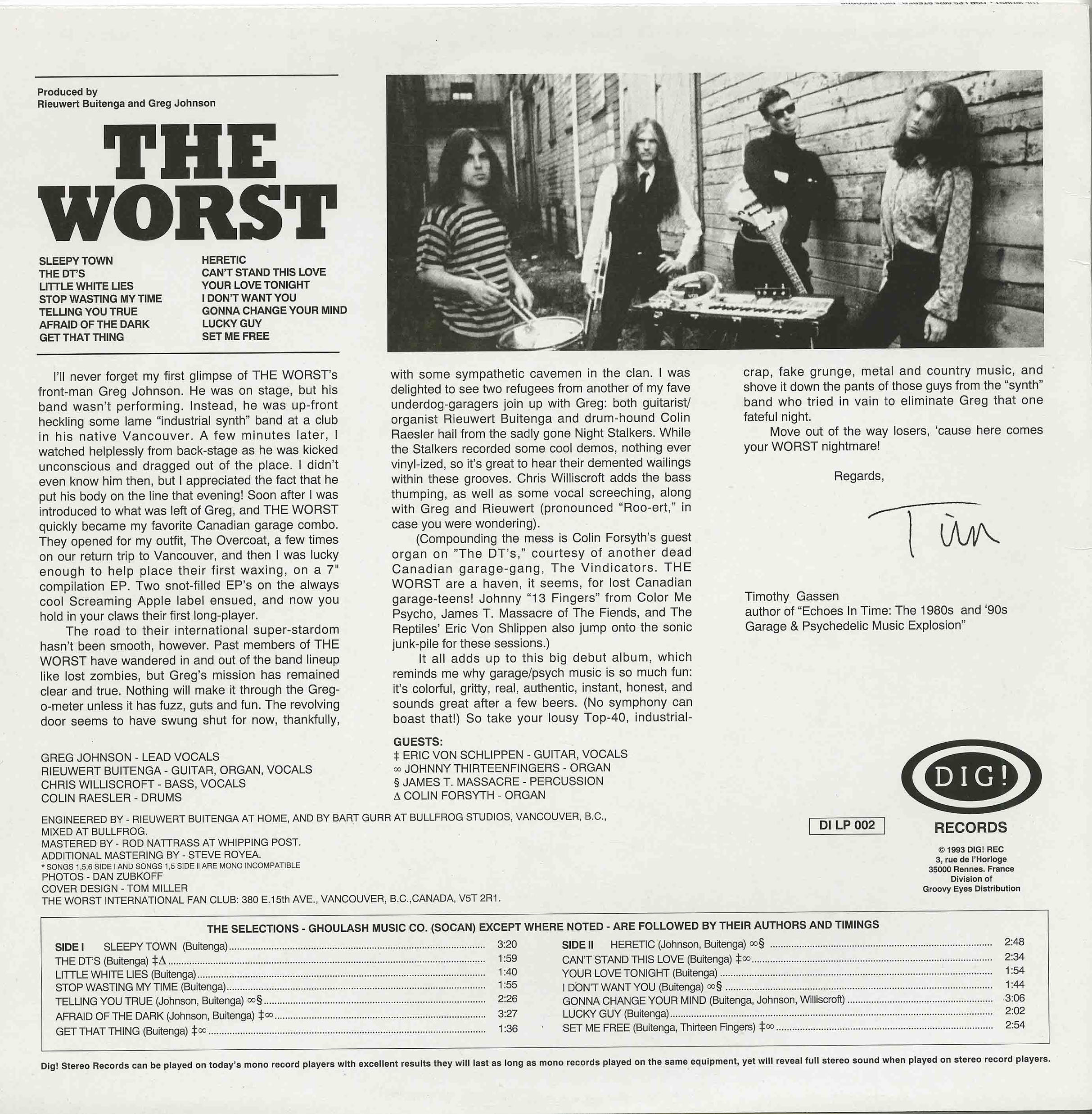 Vancouver, British Columbia group who list as inspiration The Kinks, Shadows of the Knight, Seeds, Wailers and the Painted Ship as well as The Cynics, Gravedigger V, the Gruesomes from the 80's garage punk scene. They had a rotating lineup with the mainstay lead vocalist Greg Johnson. A cassette of Studio Demos & Live Recordings was released with Gord Smithers and Rockin' Ray Larocque on guitar, Grant Shankaruk on bass, Brad Coates on drums, Karen Edgar on organ and was mixed by Wimpy Roy (Brian Roy Goble) of The Subhumans and D.O.A.