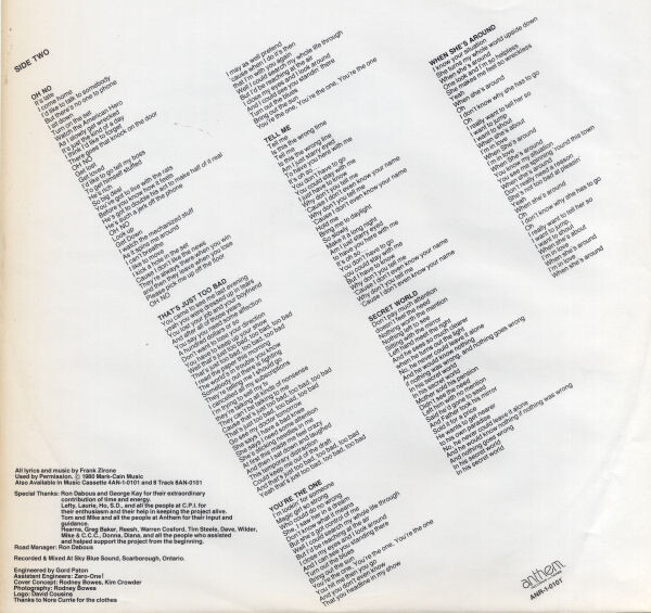 Frank Zirone: lead vocals, rhythm guitar