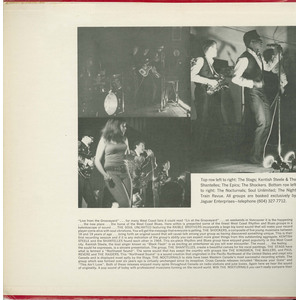 It's hard to believe that New Westminster could be the heart of the R&B Scene, but there it was, the mid 60's, and IKE AND TINA TURNER were on the bill! The former Hollywood Bowl, under new ownership of Les Vogt and the management of Douglas Miller, became the short lived Grooveyard, and took its rightful place in local music history. MARVIN GAYE, ETTA JAMES, LITTLE JUNIOR PARKER, THE SPINNERS, and BO DIDDLEY performed there, as well as hot Northwest groups THE KINGSMEN, PAUL REVERE AND THE RAIDERS, DON AND THE GOODTIMES, and even THE SONICS. Most importantly, The Grooveyard gave some of Vancouver's hottest acts a stage and, on some very special evenings, you could see up to ten live bands and dance 'til you dropped. It just didn't get any better. The original album was the brainchild of Les Vogt, band manager, concert promoter, rockabilly performer, and owner of the Grooveyard. He thought the album would generate more publicity for the club and the bands in his management stable. He took his idea to musician and song writer Tom Northcott and local entrepreneur Jack Herschorn at their offices, where they operated New Syndrome Records.