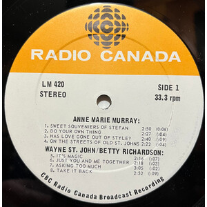 Wayne St. John says music is in his blood because his great-great grandparents made their living from singing and acting. He's been performing for 17 years. He had his own rock group and cut several records which had moderate success. He travelled around the United States and then settled in his home town, Toronto where he went from singing and playing guitar and drums to lead roles in the whole run of the Toronto production of "Hair", in which Betty Richardson also appeared. When "Hair" closed, Wayne created Hairafter, an eight piece band in which he sang lead. Then he worked on drums and percussion with such groups as 'Ocean' and 'Motherlode'. Danny Finkleman of CBC Radio asked Wayne to record these four songs for Danny's show. Wayne has tried to develop a mixture of singing styles combining the flavours of Africa and North America, and has come with a distinctive hallmark. Betty Richardson teams up with Wayne to sing a duet as well as two numbers.