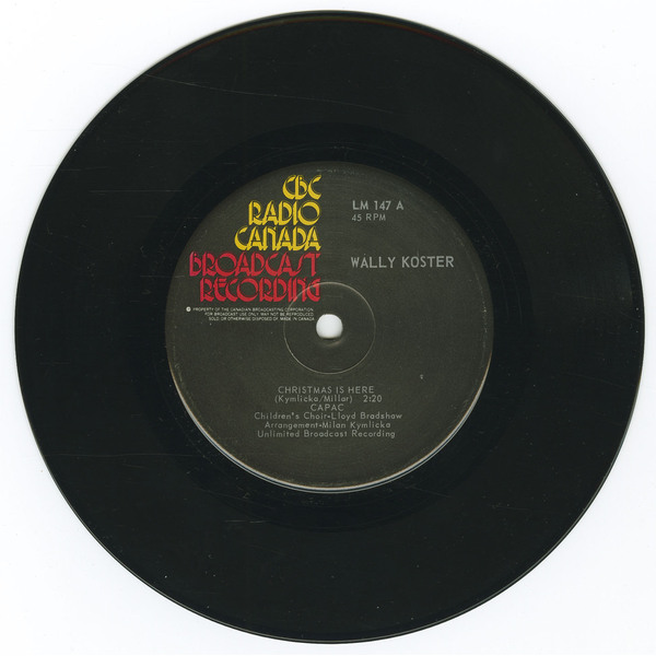His final known single appearance came late in his career with the CBC Radio Canada LM-series 45 Christmas Is Here b/w Christmas, My Time of Year (LM 147), released in 1974. Arranged by Milan Kymlicka and featuring a children’s choir directed by Lloyd Bradshaw, the record reflects Koster’s enduring relationship with CBC and his comfort within formal, seasonal, and family-oriented programming. The songs were written by Milan Kymlicka with Will Millar (Christmas Is Here) and by Kymlicka–Zubrak (Christmas, My Time of Year).