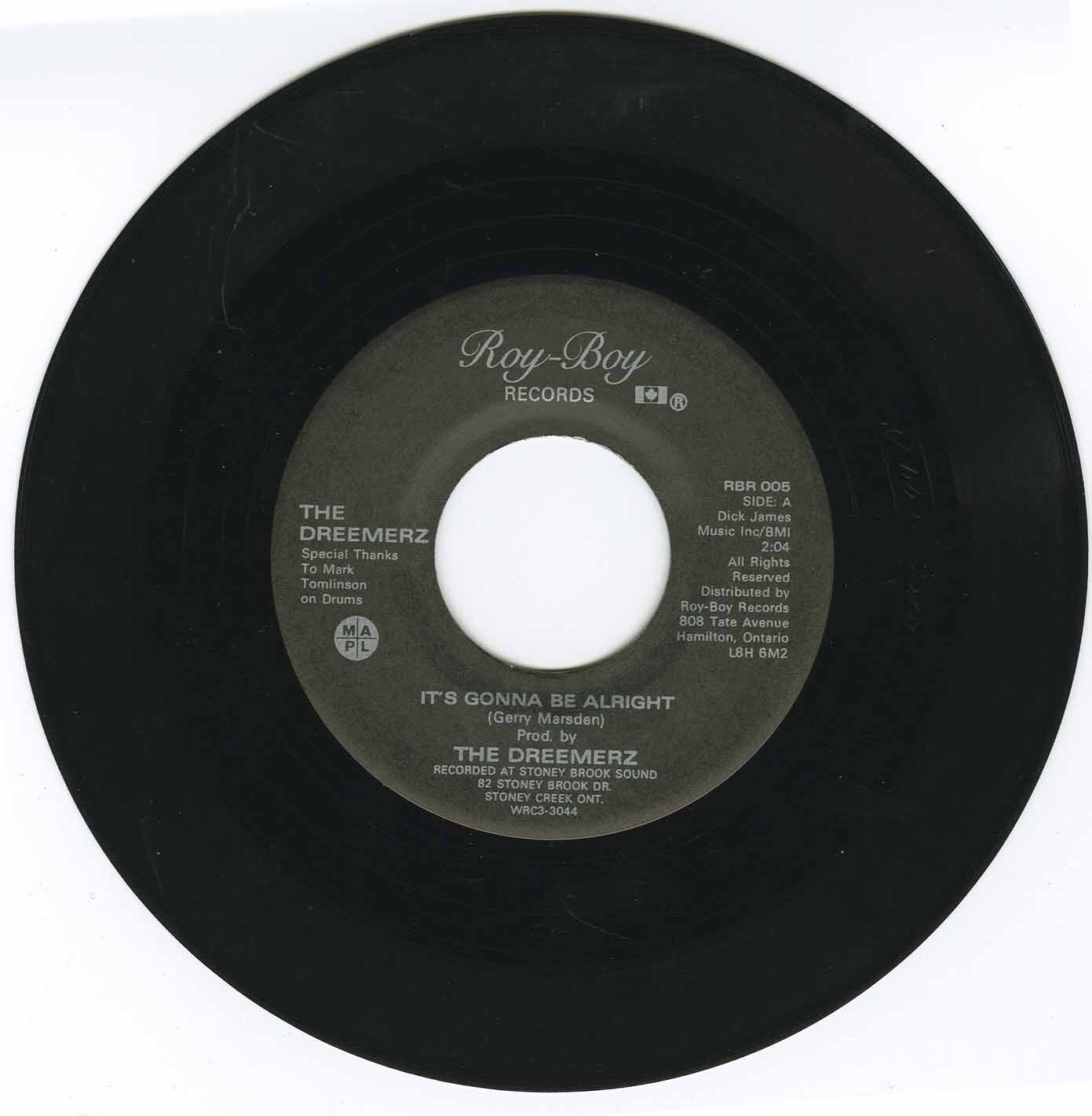 Written by Gerry Marsden (Its Gonna Be Alright); and R. Chambers, B. Simpson, and B Chambers (Hangin' Around)