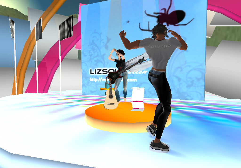 This show was also broadcast into the virtual world of Second Life. The simultaneous online event was part of a series in the Rock Can Roll/IAM Co-op Second Space Project.