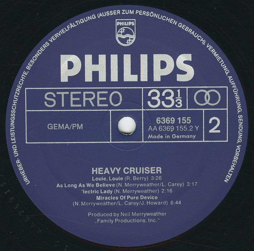 While working on Mama Lion material at Hollywood Spectrum and Paramount Studios, producer Artie Ripp gave Neil creative freedom to jam and develop new material. The result was Heavy Cruiser, a heavier, more experimental counter-project where Lynn Carey took a backseat, occasionally contributing vocals and lyrics.