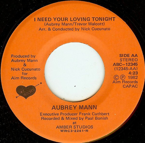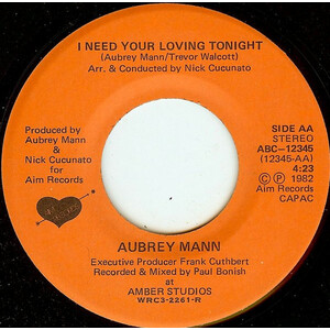Mann, Aubrey - Don't Give Up b/w I Need Your Loving Tonight (picture sleeve)