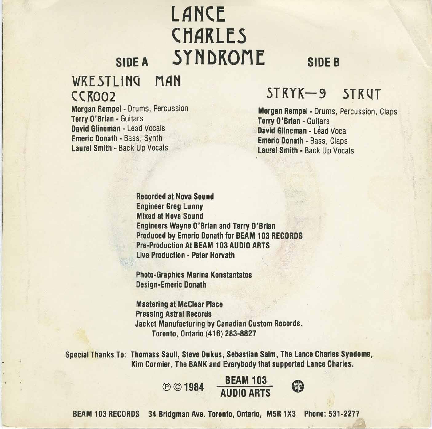 Lance Charles Syndrome - Wrestling Man b/w Stryk-9 Strut (picture sleeve)