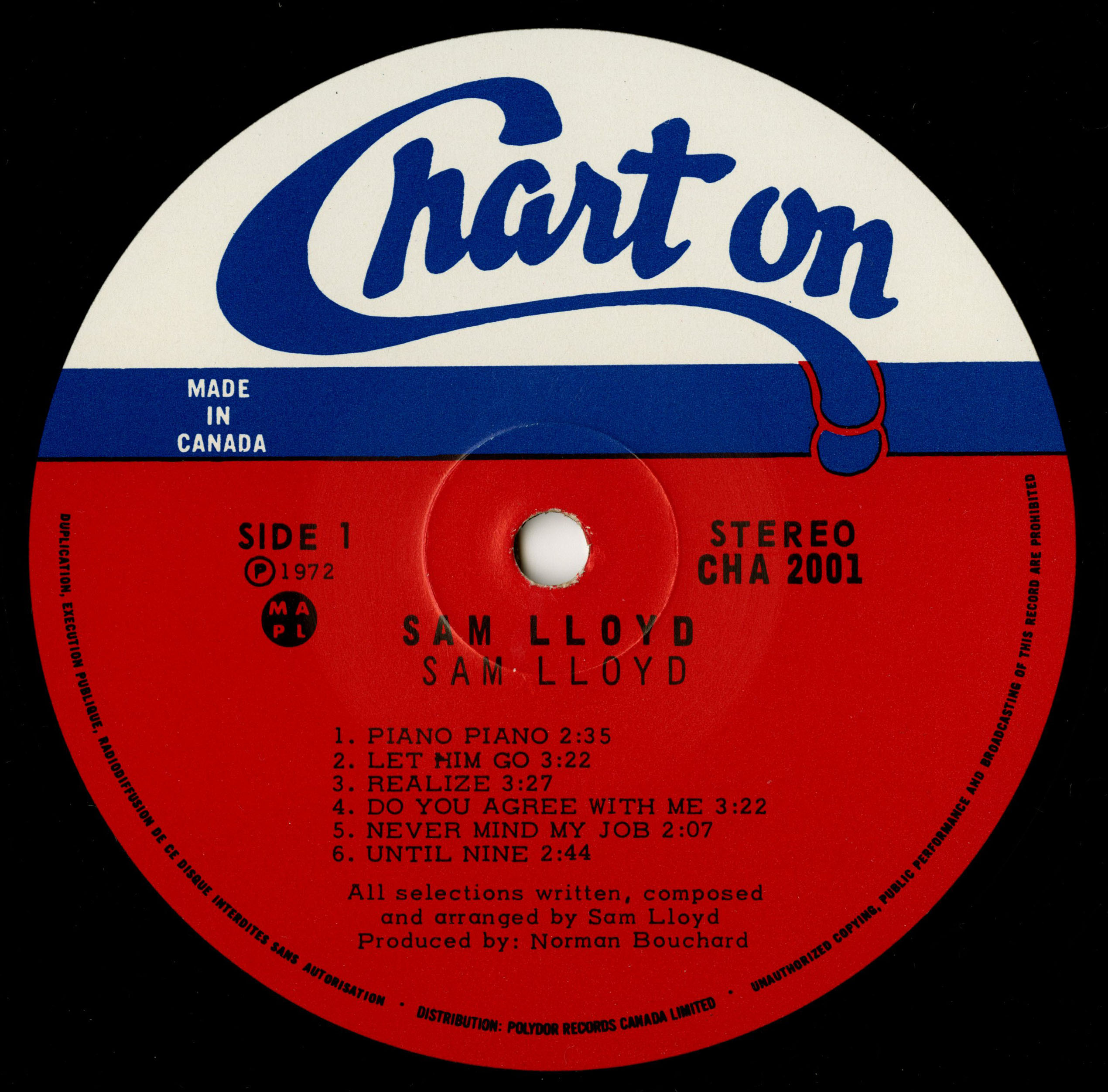 After stepping away from performing in 1968 to work in technical drawing, Brousseau spent about a year in Calgary before returning to Montréal and reconnecting with his former bandmates. By the early 1970s he had moved fully into singer-songwriter territory and adopted the name Sam Lloyd. He became the principal artist on Chart On, a small Montréal label operated by producer Normand Bouchard. Chart On existed briefly between 1971 and 1972 and focused on English-language or crossover material at a time when most Quebec independents centered on francophone pop.